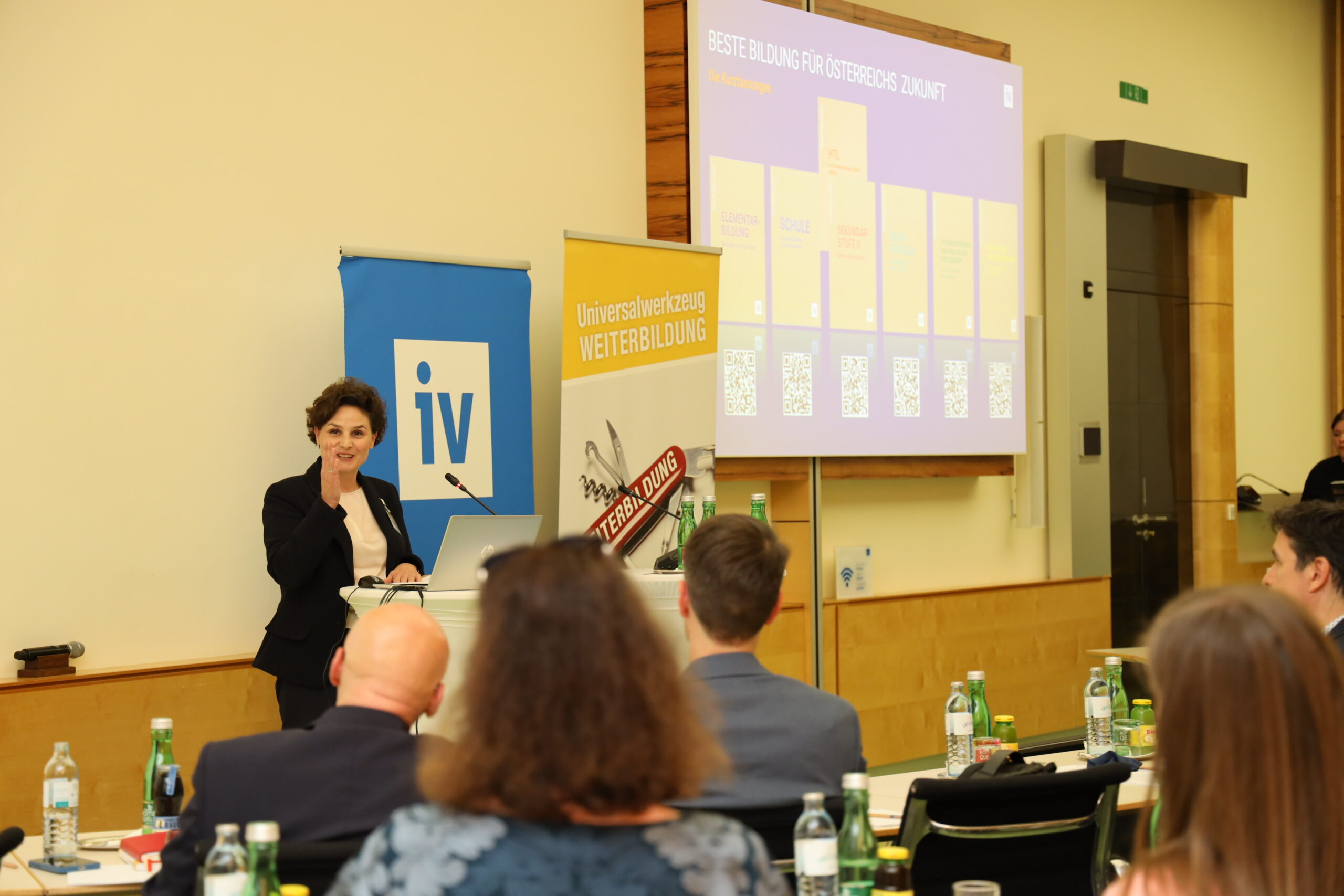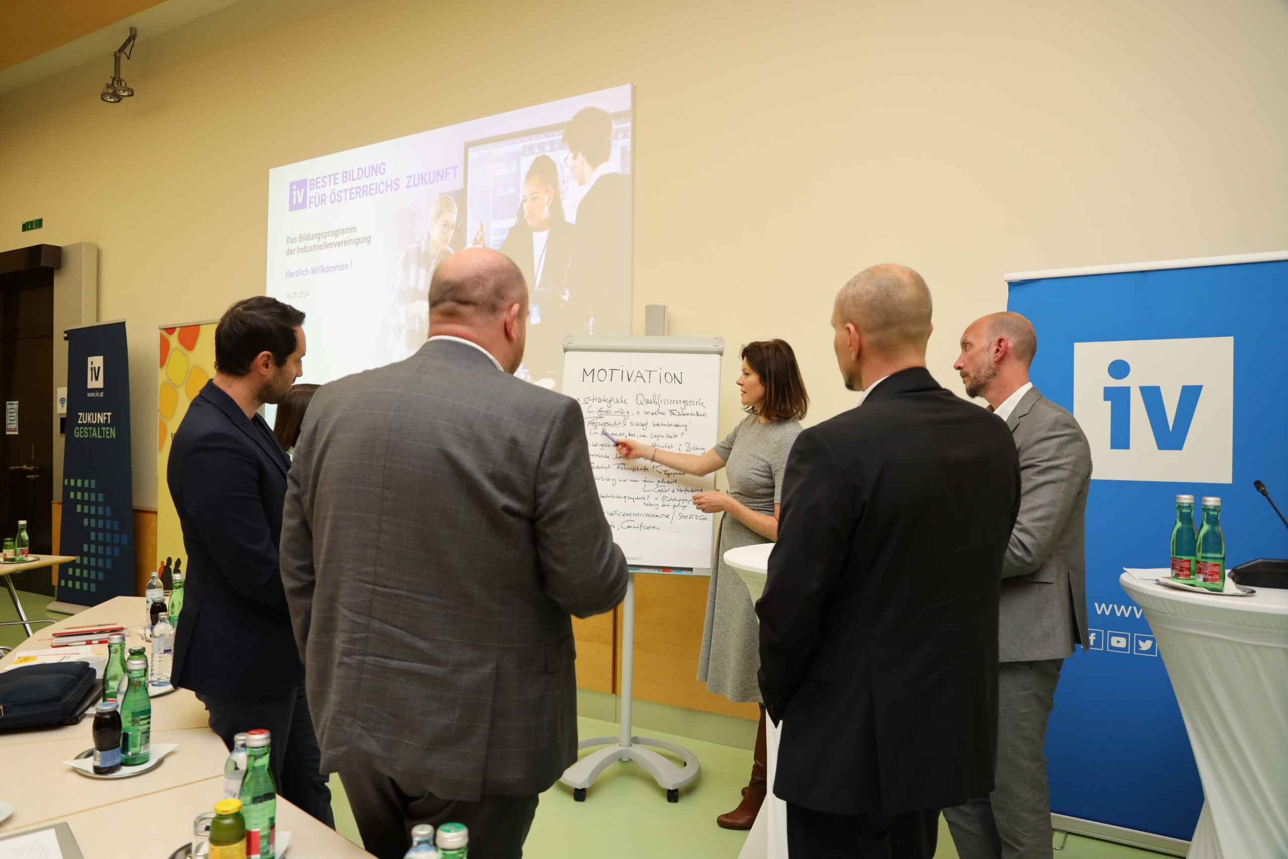 Mag. Johannes Sokopp, zuständig für den Bereich Fort- und Weiterbildung bei der Industriellenvereinigung, und Mag.a Gudrun Feucht, Leiterin des Bereichs Bildung und Gesellschaft, präsentierten anschließend das Bildungsprogramm der Industriellenvereinigung „Beste Bildung“, das konkrete Ziele und Maßnahmen formuliert, um Fort- und Weiterbildung und das österreichische Bildungssystem fit für die Zukunft zu gestalten.