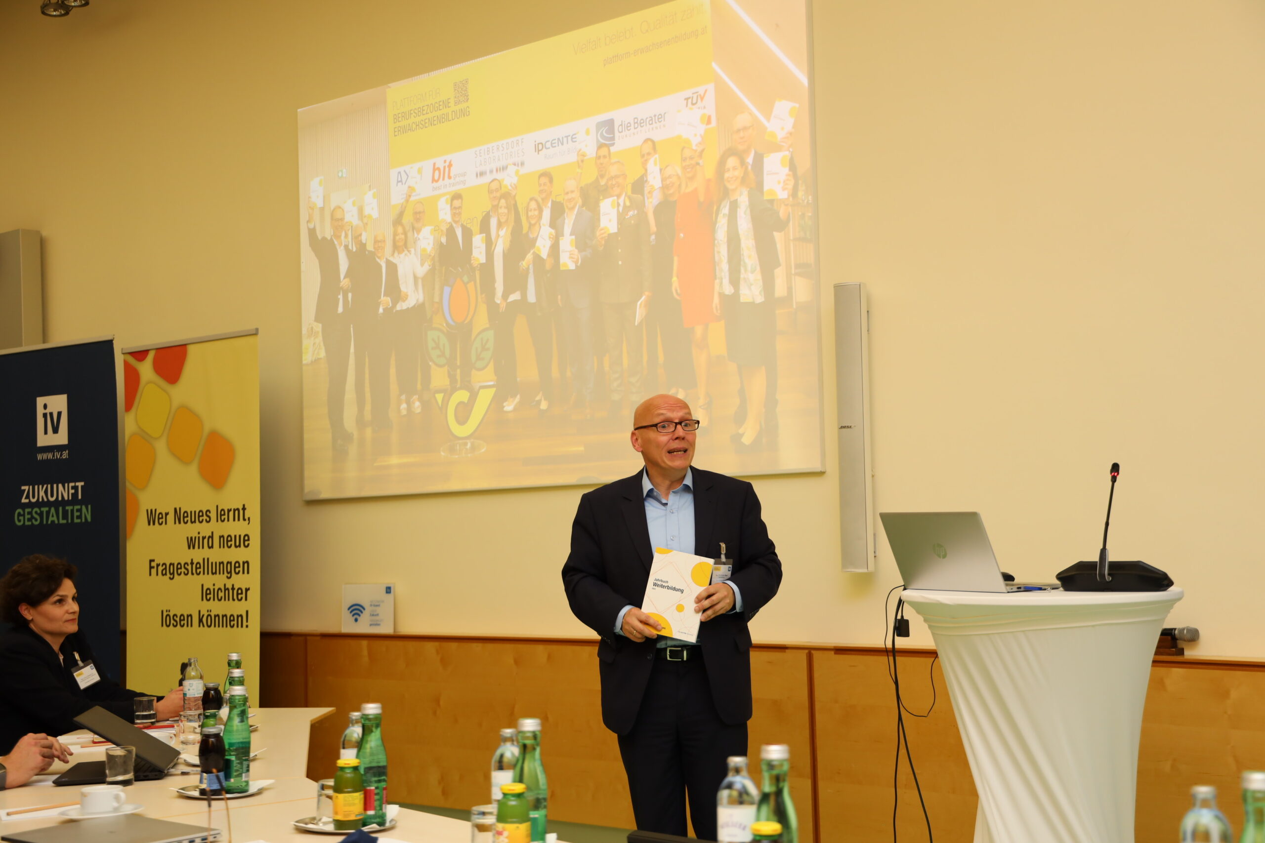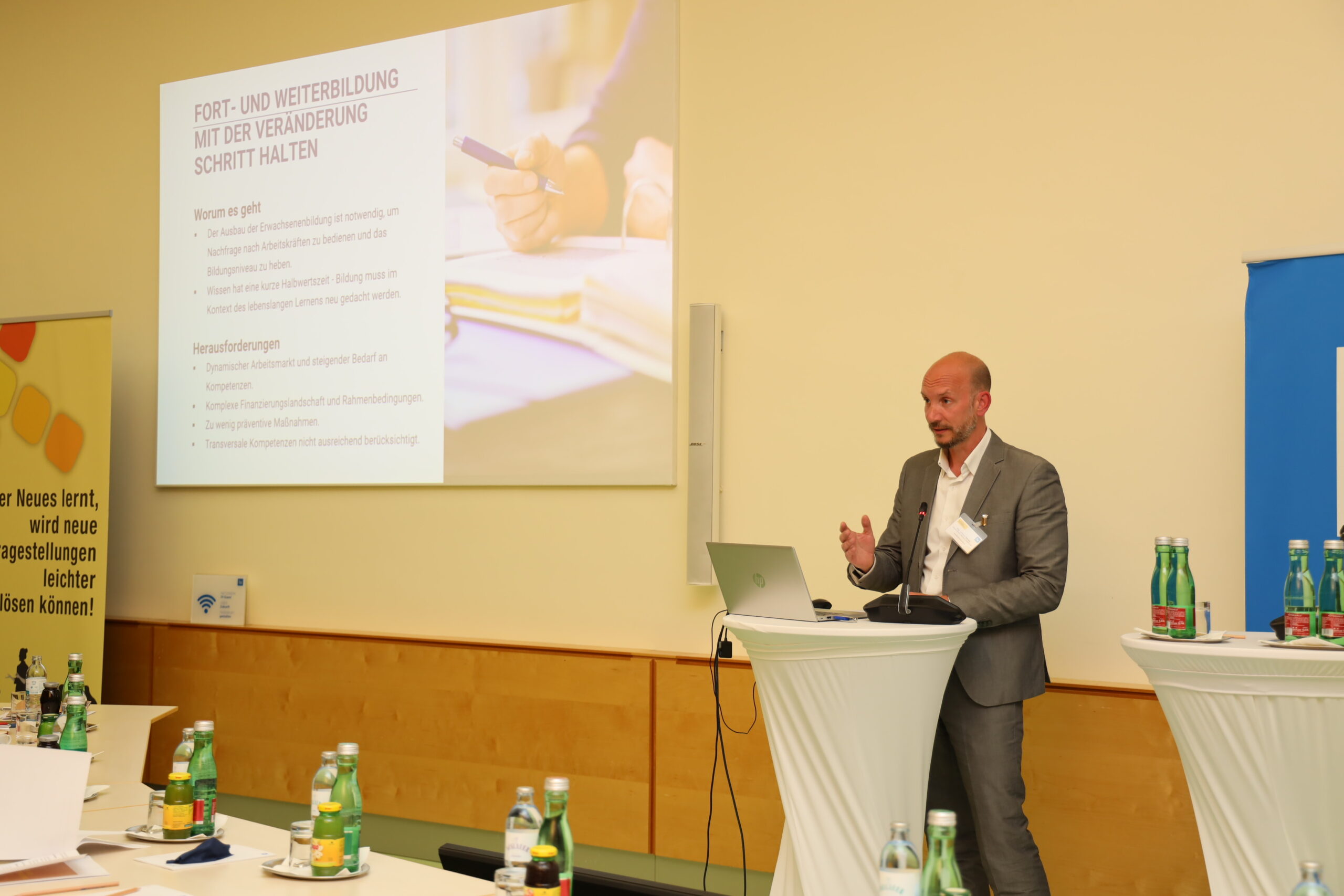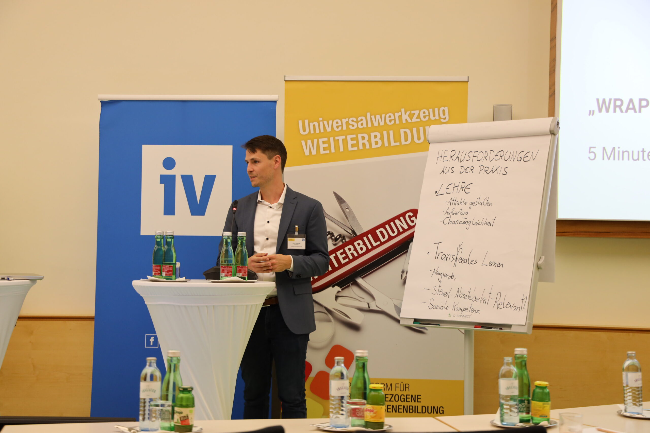 Mag. (FH) Christian Bayer, Sprecher der Plattform Erwachsenenbildung teilte wertvolle Inputs und wie wichtig genau dieses Teilen von positiven Erfahrungswerten für die Fort- und Weiterbildung ist.