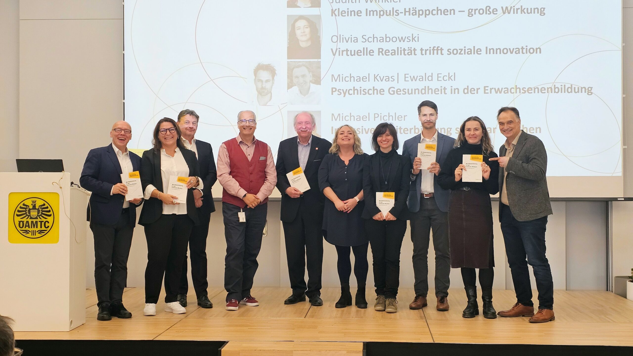 Im architektonisch beeindruckenden und modernen ÖAMTC-Stützpunkt Erdberg feierten die Plattform Erwachsenenbildung, zahlreiche Autor:innen, Plattformer:innen und interessierte Gäste die Präsentation des neuen Jahrbuchs.